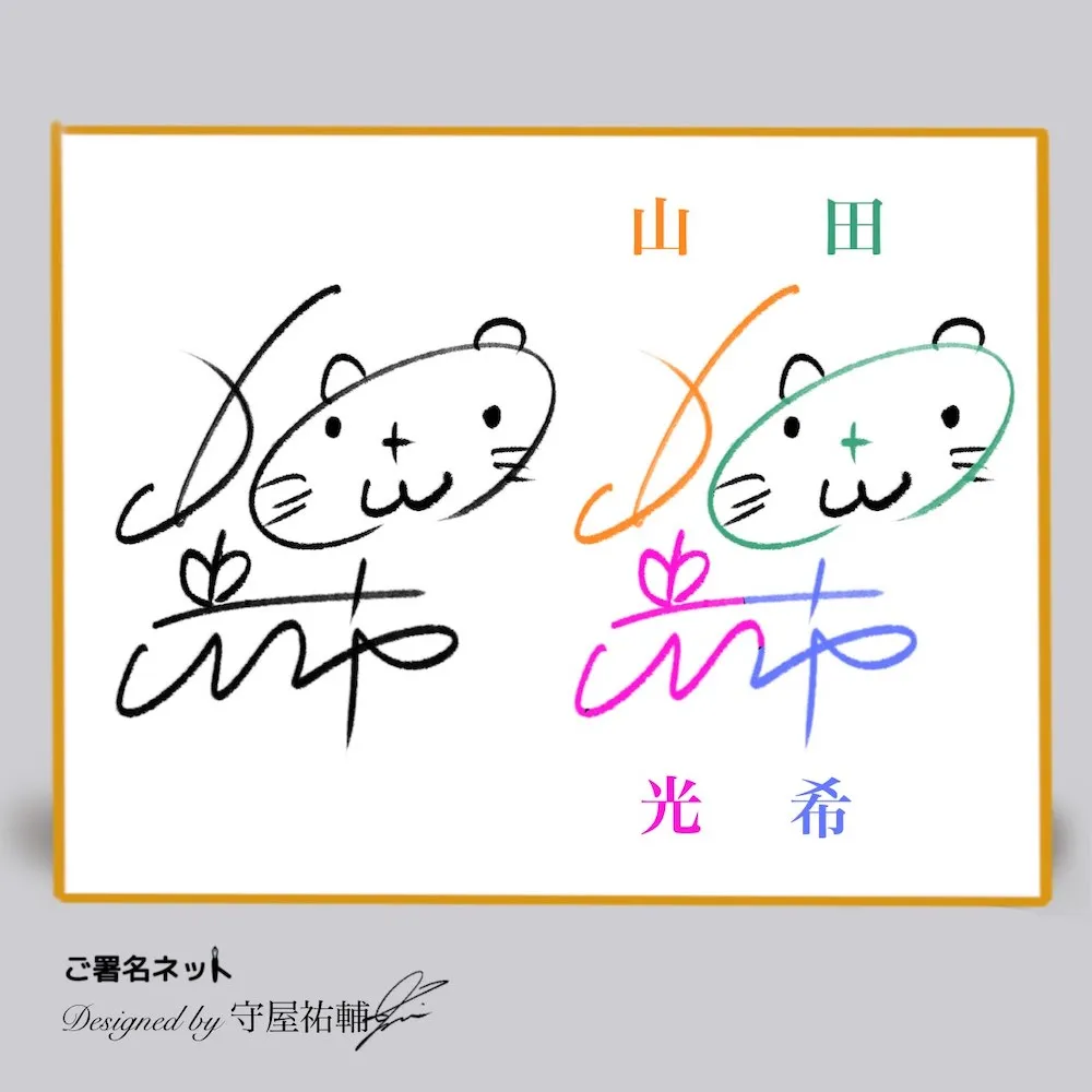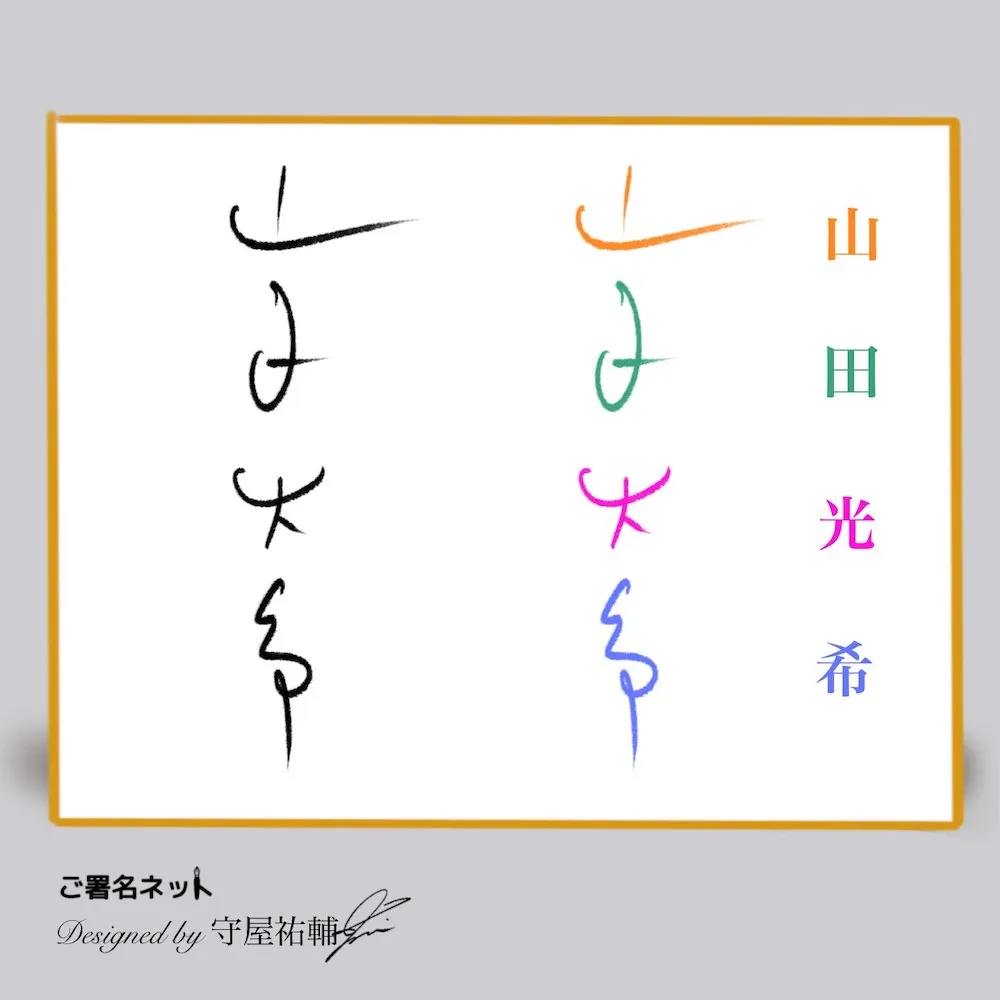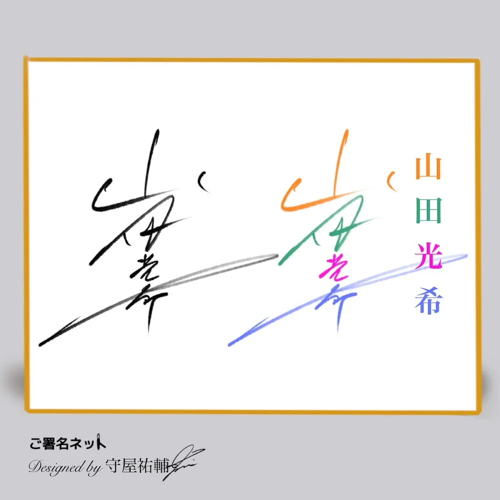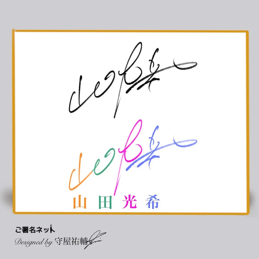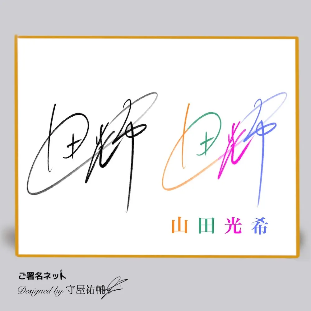ここでは『山田光希さん(仮名)』の名前をベースにして、様々な雰囲気のサインを作るコツや文字構成を画像とともにお送りします(あえて中性的なお名前を選び、どんなシチュエーションでも使えるバリエーションで紹介しています。)