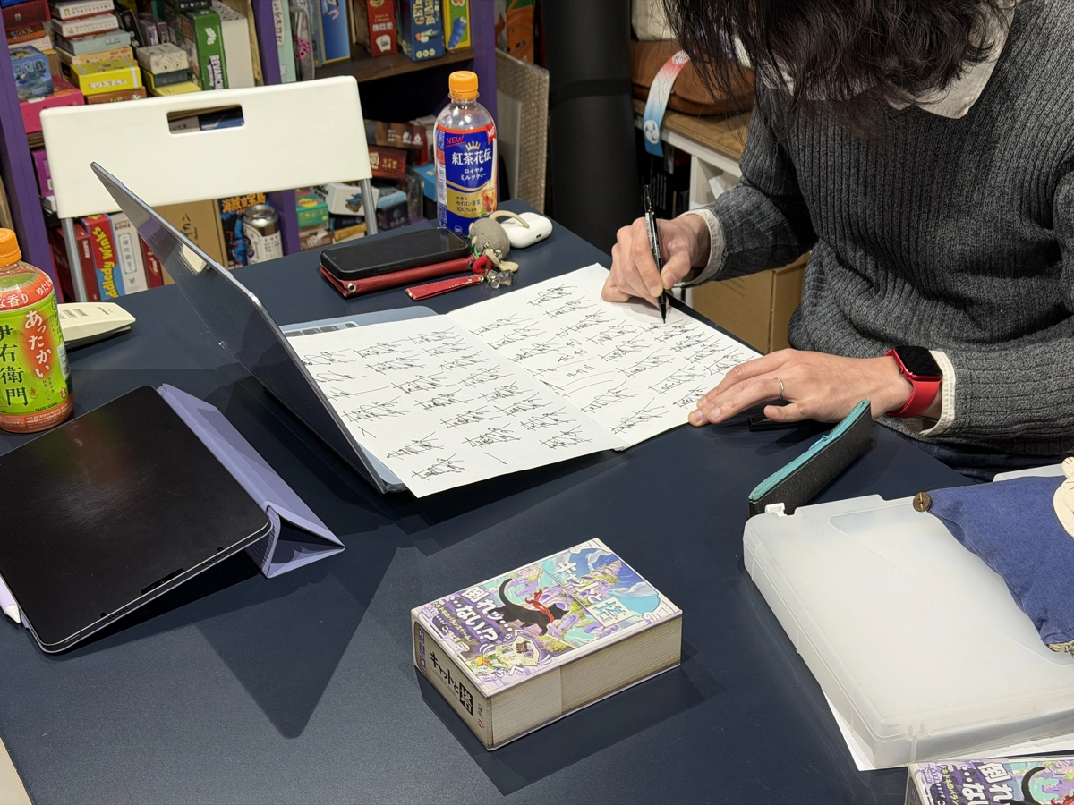 昨今、日本のボードゲームは海外でも高く評価されており、単なる記名ではなく、プロのクリエイターとしてのサインをしっかりと書きたいという熱い思いをお持ちになり、今回ご依頼いただきました。